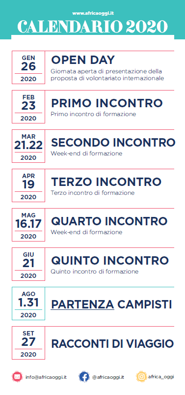 Considerato il protrarsi dell’emergenza sanitaria globale il Direttivo di Africa Oggi informa che, gli incontri e le attività di formazione previsti per quest’anno sono da considerarsi annullati.